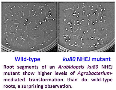 Park, S.-Y., Vaghchhipawala, Z., Vasudevan, B., Lee, L.-Y., Shen, Y., Singer, K., Waterworth, W.M., Zhang, Z., West, C.E., Mysore, K.S, and Gelvin, S.B. 2015. Agrobacterium T-DNA integration into the plant genome can occur without the activity of key non-homologous end-joining proteins. Plant J. DOI: 10.1111/tpj.12779.