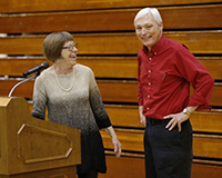Outstanding Alumni Award recipients Dr. Melissa Harrington and Dr. Kevin Camphausen at the Awards dinner in their honor.